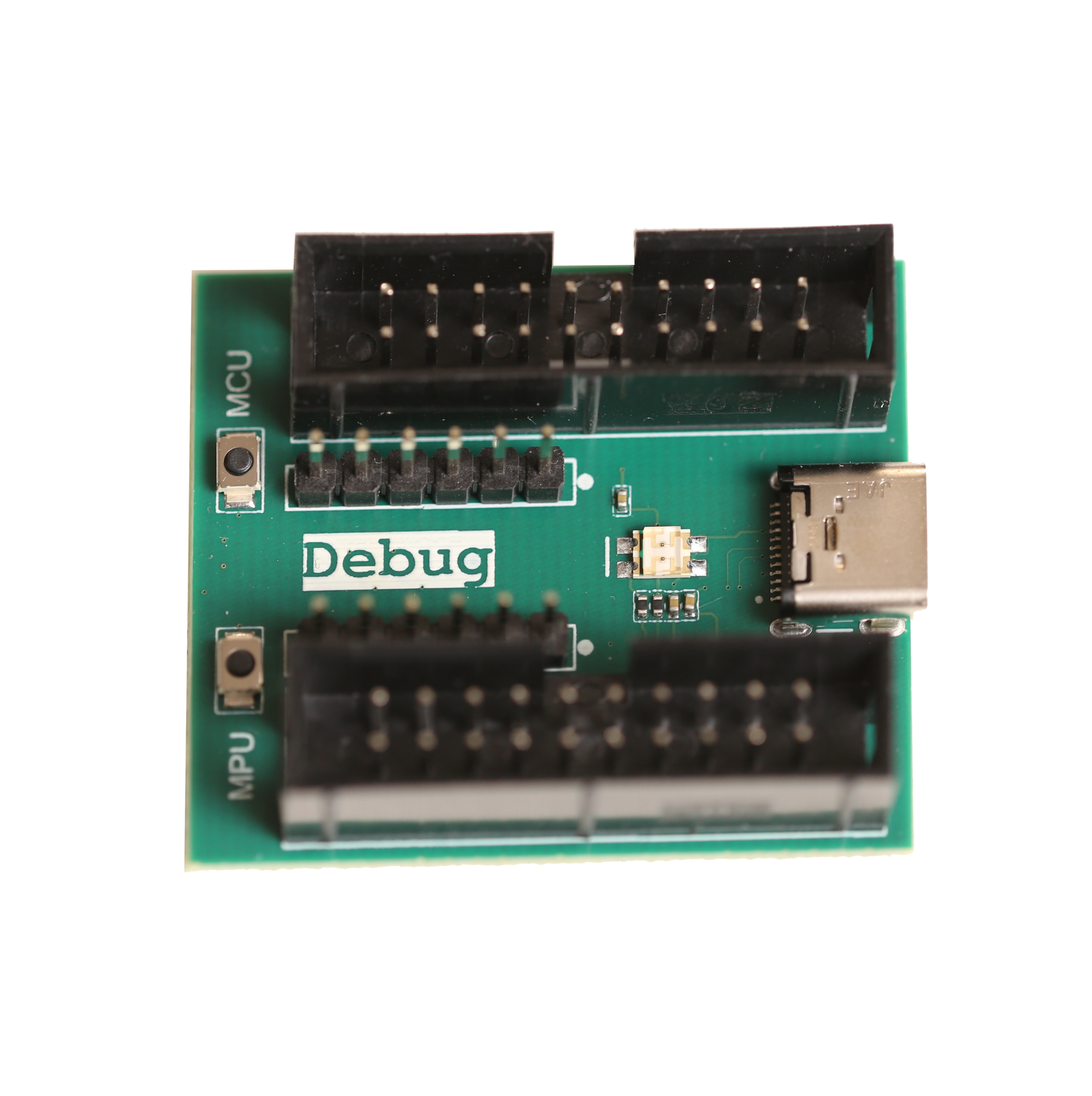 The SensWear Debug Board provides a dedicated interface for programming, flashing, and low-level debugging of the SensWear platform. It enables full access to the mainboard MCU and the BHI360 motion processing unit through standard JTAG/SWD interfaces, allowing reliable firmware upload, configuration, and development using tools such as J-Link.